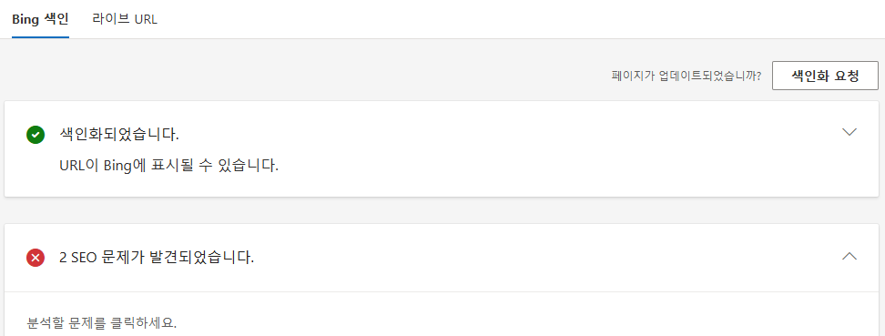 빙 웹마스터 툴에도 제 도메인을 색인 요청했습니다.